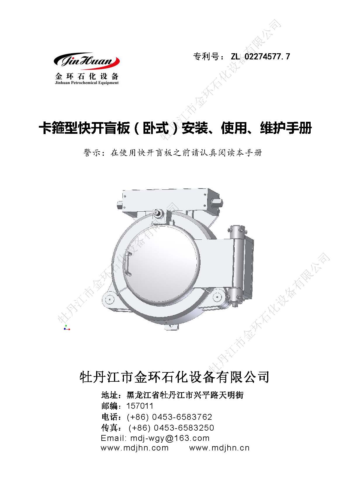 卡箍臥式快開盲板說明書
