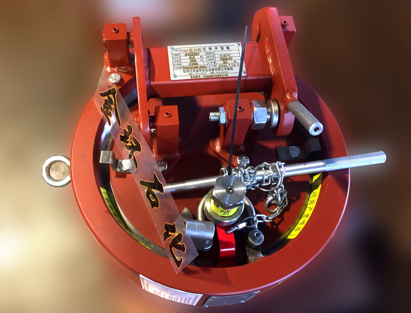 快開盲板是用于壓力管道或壓力容器的圓形開口上的一種機械裝置。一般由筒體法蘭、頭蓋、勾圈或卡箍、密封圈、安全聯(lián)鎖機構(gòu)、開閉機構(gòu)、轉(zhuǎn)臂及短節(jié)(需要時)等部件構(gòu)成。
