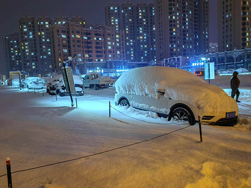初冬銀裝素裹的傍晚